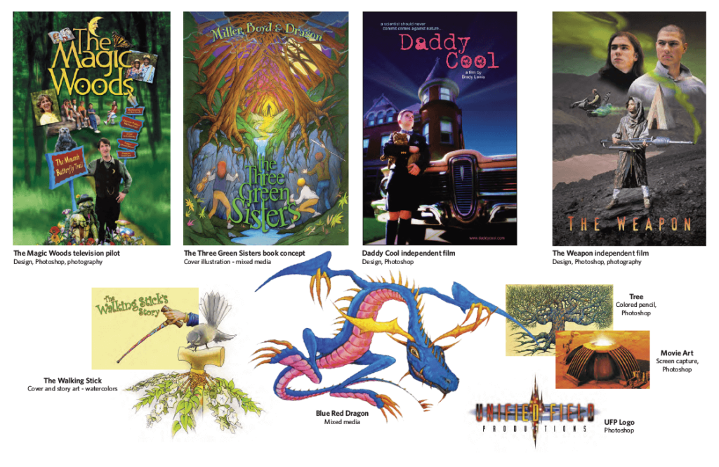 Engaged in collaborative or contracted creative services for Disney, Carnegie Mellon University, National Robotics Engineering Consortium, Chalk Hill Publishing, Science Thriller Media, National Scenic Visitors Center, WQED TV, The Magic Woods children’s show, Duquesne University, Wintec, Pittsburgh Filmmakers and others.
